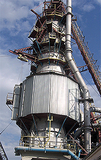 Шахтная печь, оснащенная керамическим керном, работает следующим образом. Подача известняка в печь производится скиповым подъемником. Перед загрузкой известняка в скип, производится контрольное грохочение для отсева мелких фракций, образовавшихся при его разрушении во время пересыпок. Скиповым подъемником известняк подается в приемный бункер загрузочного устройства и поступает в зону подогрева печи, где он прогревается за счет тепла уходящих газов. Из зоны подогрева известняк поступает в зону обжига, и распределяется керном на четыре сектора, где обжигается продуктами сгорания топлива, поступающими из отверстий в керне и периферийных горелок. Разность температур по сечению печи по опытным данным составляет 50 – 600С, что позволяет достичь высокой степени обжига.